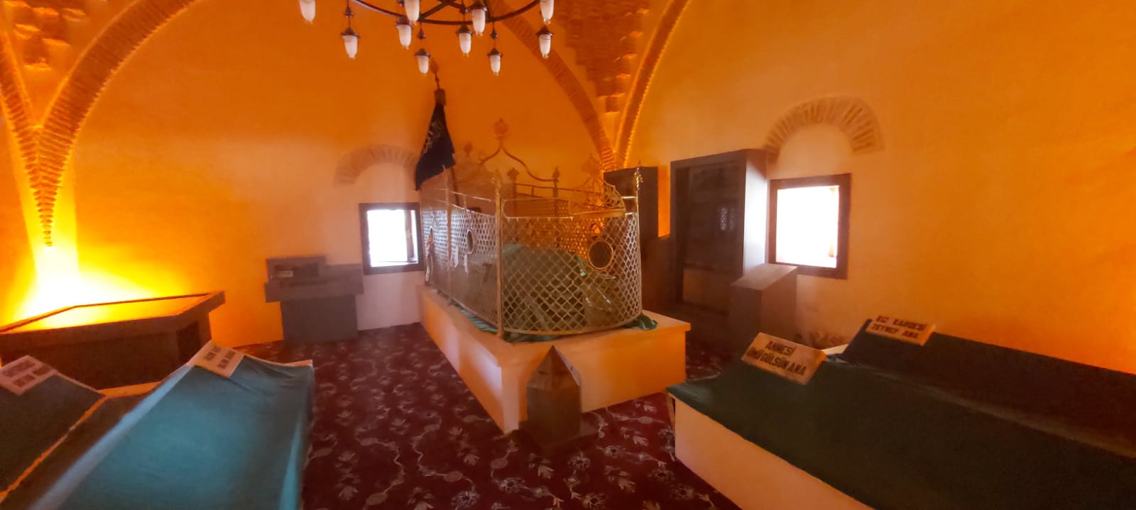 İlk inşaından beri tekkenin çekirdeğini teşkil eden türbe, XIV. Yüzyılın ikinci yarısında, Abdal Musa’nın hayatının sonlarına doğru veya ölümünü müteakip yapılmış olmalıdır. Tekeoğulları dönemine ait olduğu anlaşılan bu binanın mimarisi Selçuklu kümbetlerinin geleneğini sürdürmektedir. Kare planlı harimin üstünü örten ve içerden tromplara, dışardan da sekizgen kasnağa oturan kubbe, sekizgen piramit biçiminde bir külahla gizlenmiştir. Evliya Çelebi, bugün kurşunla kaplı olan bu külahın o devirde çam tahtası ile örtülü olduğunu yazmaktadır. Muntazam kesme taşlarla ve itinalı bir işçilikle örülmüş olan duvarların birinde kapı, diğerlerinde küçük ve basık birer pencere bulunmaktadır. Girişin iki yanına, biri tekkenin Sultan Abdülaziz tarafından ihyasına, diğeri 1910 yılındaki onarıma ait olan iki manzum kitabe yerleştirilmiştir. Abdal Musa Sultan’ın sandukasının başucunda seyyid olduğunu gösteren yeşil imamesi durur. Duvarın dibinde ise Mehdi için bir mezar yeri ayrılmıştır. Anlatıldığına göre, buraya da Mehdi’nin cenazesi konacaktır. Sandukaların en büyüğü Abdal Musa’ya ait olup merkezde bulunmakta veetrafını pirinçten yapılmış ajurlu bir şebeke çevrelemektedir. Diğerleri babası Hasan Gazi Sultan, annesi Ümmü Gülsüm Ana ve kız kardeşi Zeynep Ana ve müridi Kaygısız Sultan’a aittir. Türbenin önünde, ortası alemli ve kubbe şeklinde, yanları ise meyilli çatı görünümünde olan bir ahşap örtü ile kaplı giriş holü yer almaktadır. 1874’te tamamen yenilenmiş olduğu anlaşılan bu bölümde, Abdal Musa’nın müntesiplerine ait bazı isimsiz lahitler bulunmaktadır.