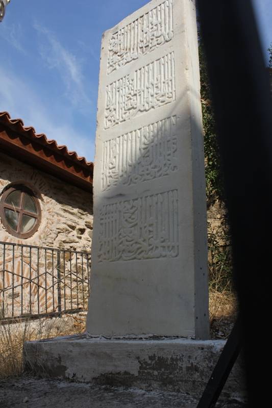 Caminin bahçesinde bulunan, Roma döneminden kalma bir sütun kaidesinden, içi oyularak yapılmış bir dibek taşı dikkatleri çekmektedir.