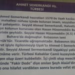 Sen hakikaten nasibi olan kimsesin. Beyhude yere ticaretin yükü altında ezilme. Kesret çarşısından yüz çevirip Anadolu’nun güzel şehirlerinden birisi olan Uşak’ta oturan Şeyh Ahmed Semerkandi hazretlerine varıp mürid ol, uzlet köşesine çekilip kendini ve eleminin kaynağını bulmaya ve kurutmaya çalış. ” denilmiştir.